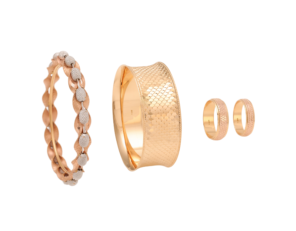 Every swirl and curve in Gold Tree's bangle collection speaks the language of grace, dancing on the wrists of the discerning and elegant. Our artisans weave together a tale of beauty, tradition, and contemporary style, each bangle a testament to their craftsmanship. Through the glimmering allure of gold and the timeless charm of our designs, we bring you jewellery that transcends the ordinary.