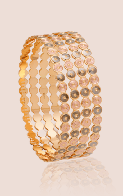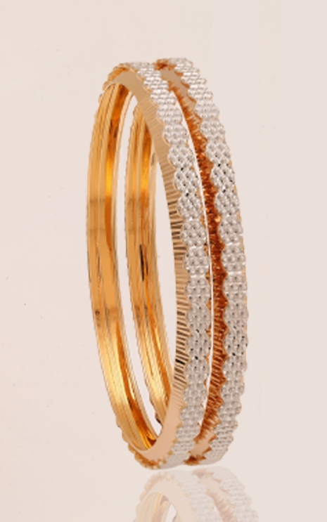 Experience the enchanting allure of our collection, featuring meticulously crafted bangles in styles like flat, hollow, and filigree. Embrace the timeless elegance with designs like khilla, kanas, and half round, evoking a sense of serenity and grace.